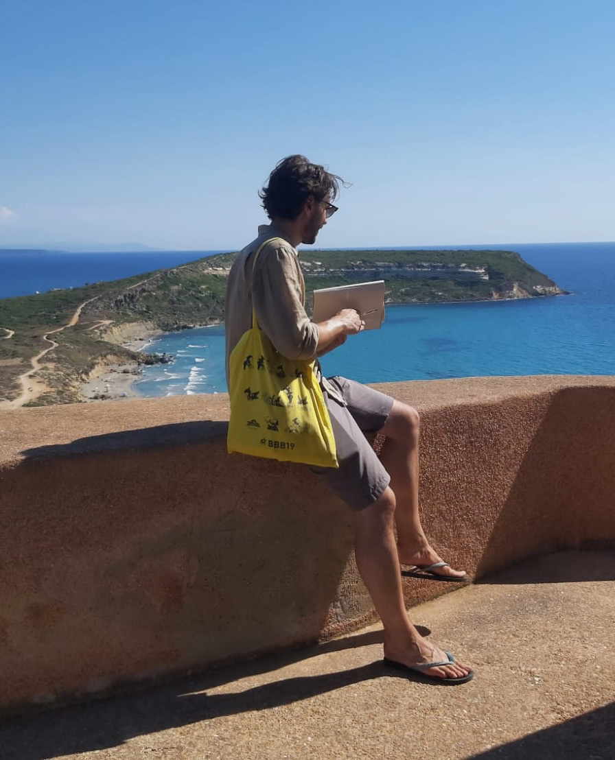 Born in Italy's lakes region, his work is deeply influenced by mountains, natural landscapes and outdoor life. Often, his images depict literary scenes set in real landscapes, featuring bright colour palettes and subtle narrative details.