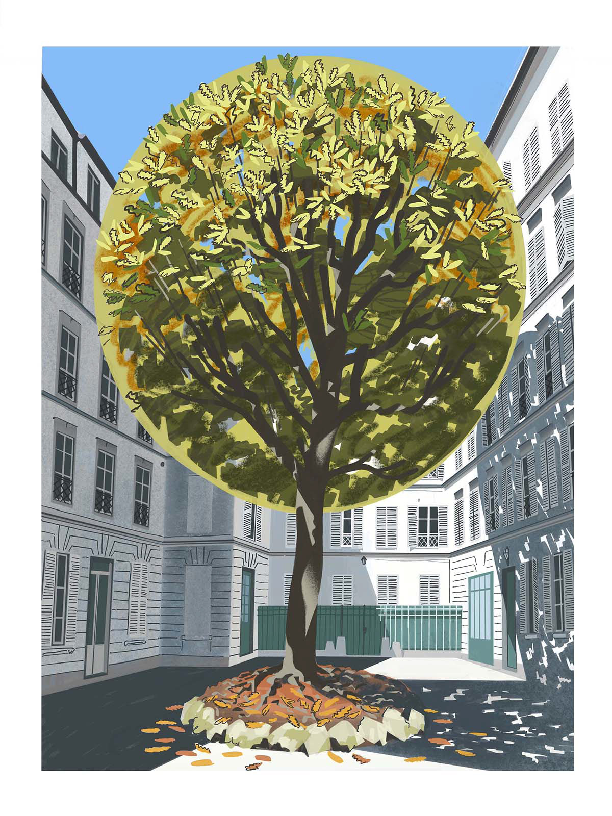 Un Castagno - digital illustration, subject interpreted as Risograph Limited edition Print.