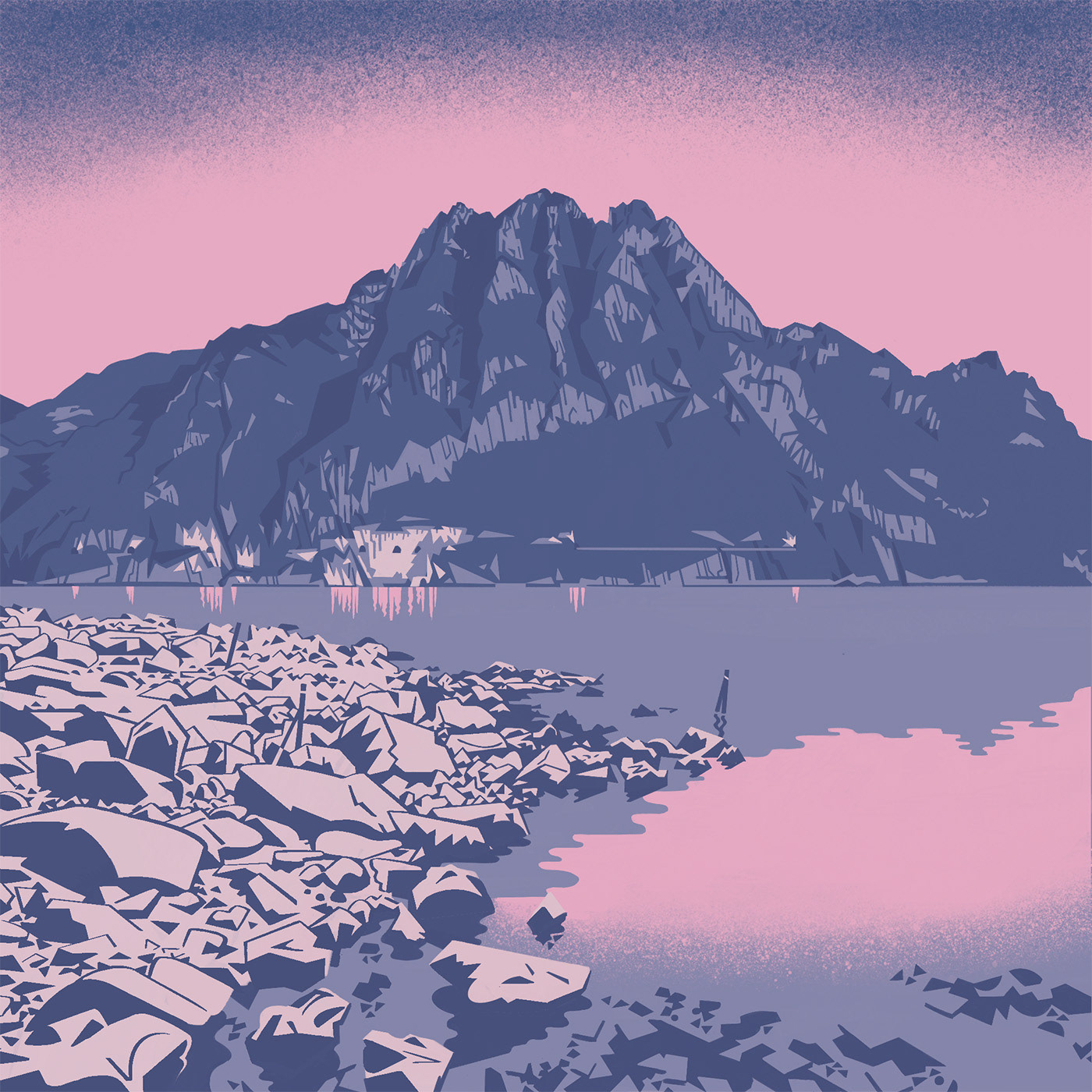 Corna dei Trentapassi - digital illustration, subject interpreted as a Risograph Limited edition Print.