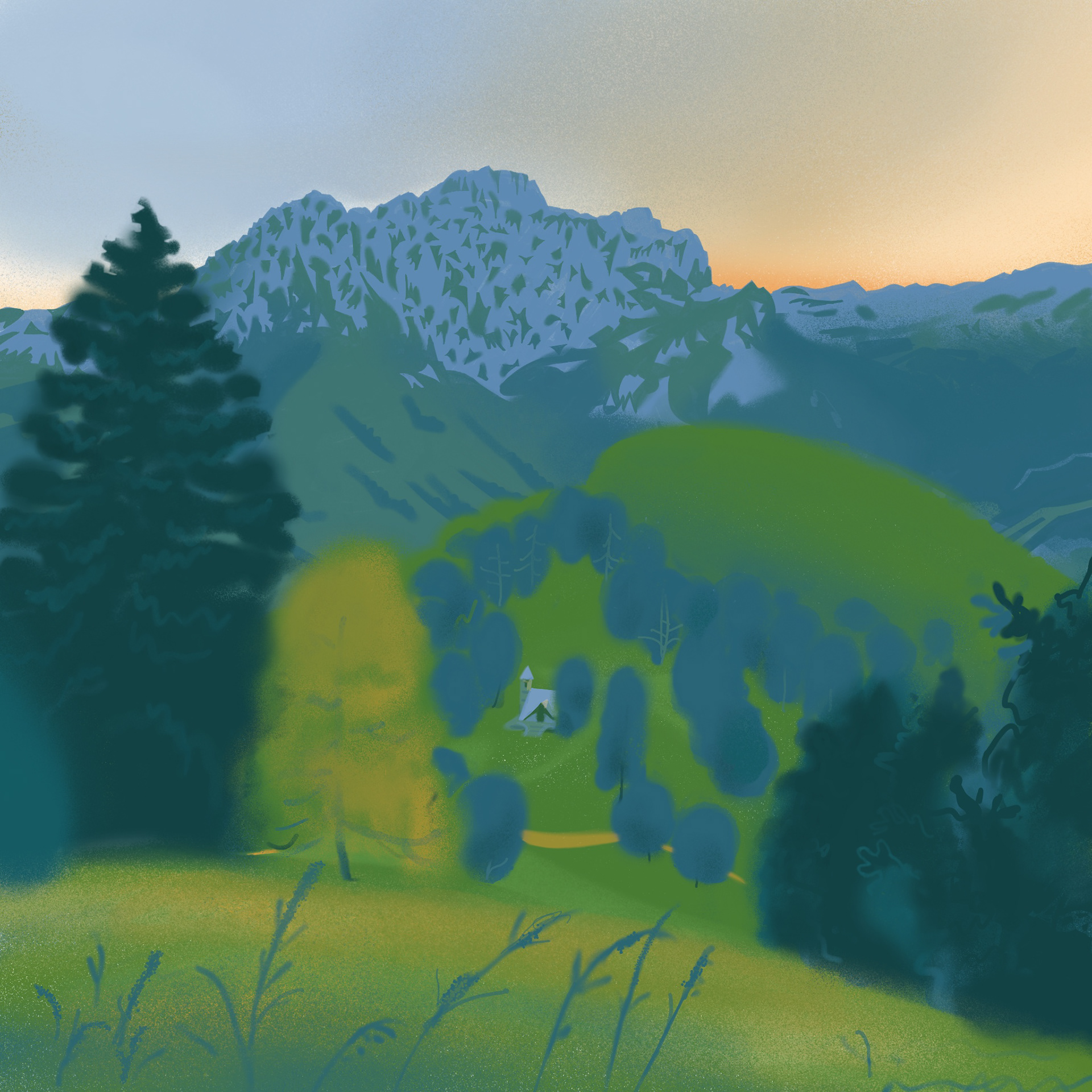 Presolana - digital illustration, subject interpreted as a Risograph Limited edition Print.