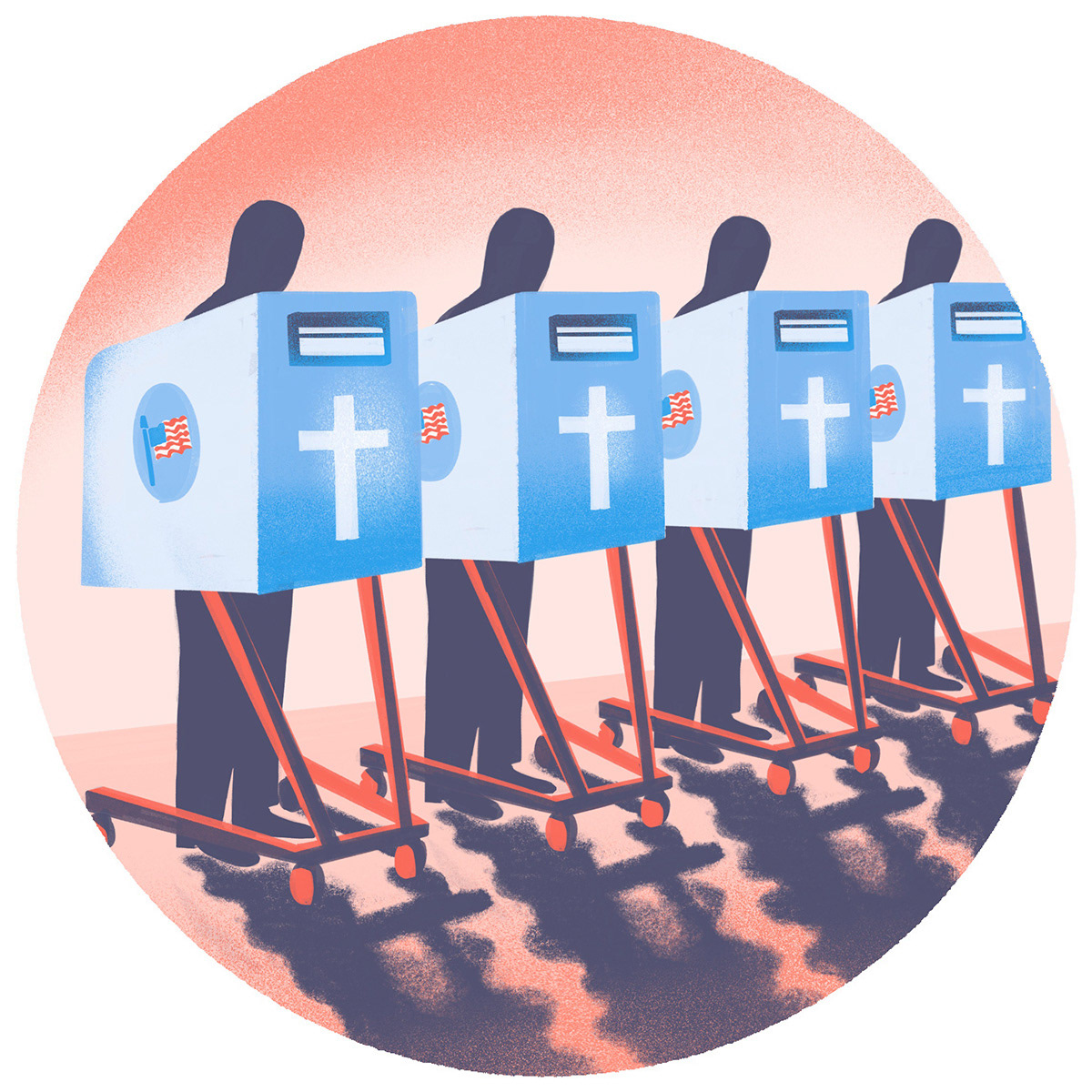 Thumbnail illustrations on social issues in the United States ahead of the 2020 elections.